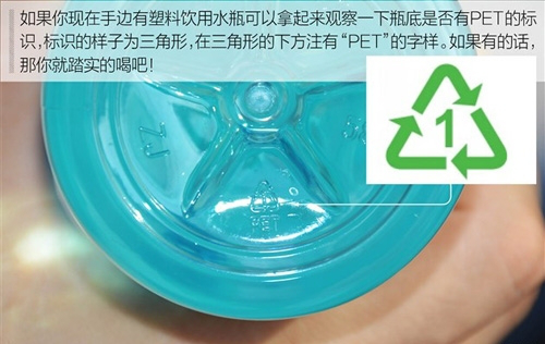 在瓶裝水的瓶子底面一般都有編號,三角形圖案里面有一個阿拉伯?dāng)?shù)字1,一般的礦泉水瓶都是上圖的1號,其中PET本身沒有問題,性質(zhì)很穩(wěn)定,但不耐熱,受熱或長時間接觸釋放出的致癌物質(zhì)就是我們常見的增塑劑,增塑劑不是都有害,但大部分瓶子都加的是鄰苯類的(參加塑化劑的危害)。