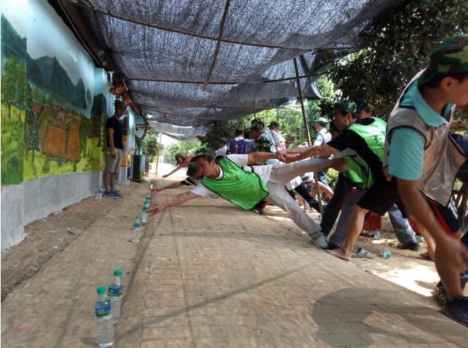 到達(dá)嶺前生態(tài)園拓展基地后,大家被分成紅、黃、藍(lán)、白、橙、綠六隊(duì),并通過(guò)各小組的一番頭腦風(fēng)暴,產(chǎn)生了各富特色的隊(duì)名和一首首旋律高亢的隊(duì)歌。伴隨著“星星隊(duì)”、“驕陽(yáng)隊(duì)”、“甜蜜暴擊隊(duì)”、”火箭隊(duì)”等多個(gè)個(gè)性鮮明團(tuán)隊(duì)的組成,在充滿豪情壯志、嘹亮的團(tuán)隊(duì)隊(duì)歌下,公司拓展訓(xùn)練活動(dòng)拉開(kāi)了序幕。