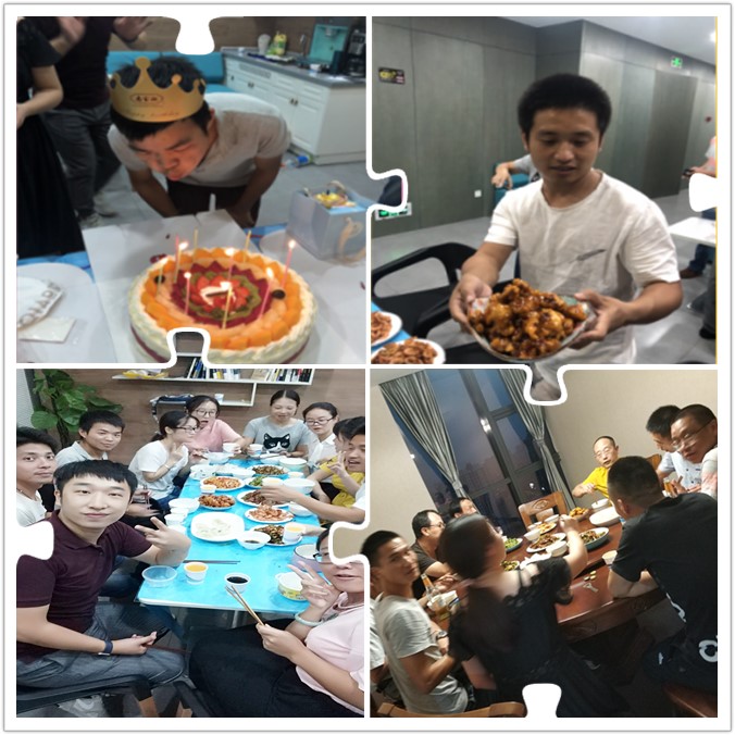 晚餐結(jié)束后,開(kāi)始了活動(dòng)的第二部分:9月壽星慶生會(huì)。大家給9月份過(guò)生日的同事準(zhǔn)備了蛋糕及生日禮物,讓壽星感受到了公司大家庭的溫暖和同事們的關(guān)愛(ài),大家一片歡歌笑語(yǔ),其樂(lè)融融。伴隨著同事們的聲聲祝福,壽星許心愿、吹蠟燭,切開(kāi)代表著大家祝福的生日蛋糕。